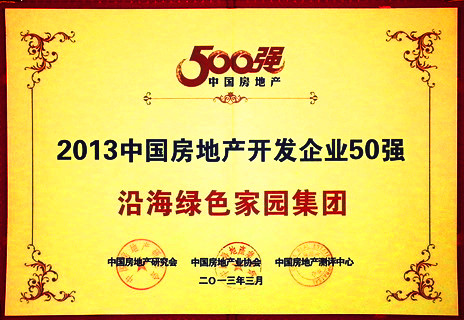 3月22日下午,由中國房地產(chǎn)研究會、中國房地產(chǎn)業(yè)協(xié)會與中國房地產(chǎn)測評中心聯(lián)合舉辦的“2013中國房地產(chǎn)500強(qiáng)測評成果發(fā)布會暨500強(qiáng)峰會”在北京國貿(mào)三期舉行,沿海綠色家園集團(tuán)從參評的500余家企業(yè)中脫穎而出,繼2012年后,今年再次入選 “中國房地產(chǎn)開發(fā)企業(yè)50強(qiáng)”。