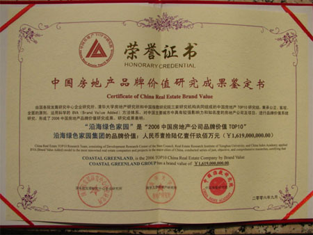 2006年9月16日,在每年一度發布的“中國房地產公司品牌TOP10”榜單上,沿海集團(以下簡稱“沿海集團)再一次榜上有名。至此,沿海集團已連續三次獲此榮譽。