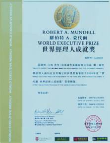“蒙代爾·世界經理人成就獎”是目前對經濟、管理、商業領域的職業經理人最高獎項,由權威的管理雜志《世界經理人周刊》聯合《蒙代爾》雜志等20家主流財經媒體聯合評選,提名專家和評選委員來自國際知名經濟學家、管理學家、咨詢專家等。