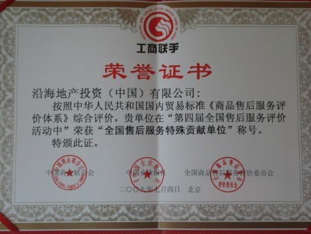 沿海集團一直致力于提升服務水平 ,一貫將客戶服務置于十分重要的地位 ,顧客責任已經成為集團責任體系的重要組成部分。去年,沿海集團創新推出400客服系統,開創全國房地產行業優質服務之先河。組委會專家一直認定,沿海集團客服體系有著先進的服務理念、穩定的技術平臺、高超的服務效率,運行一年以來不僅取得了良好的服務效益,而且促進了房地產行業服務理念和服務水平的提升。此次榮獲全國售后服務突出貢獻單位,實至名歸。