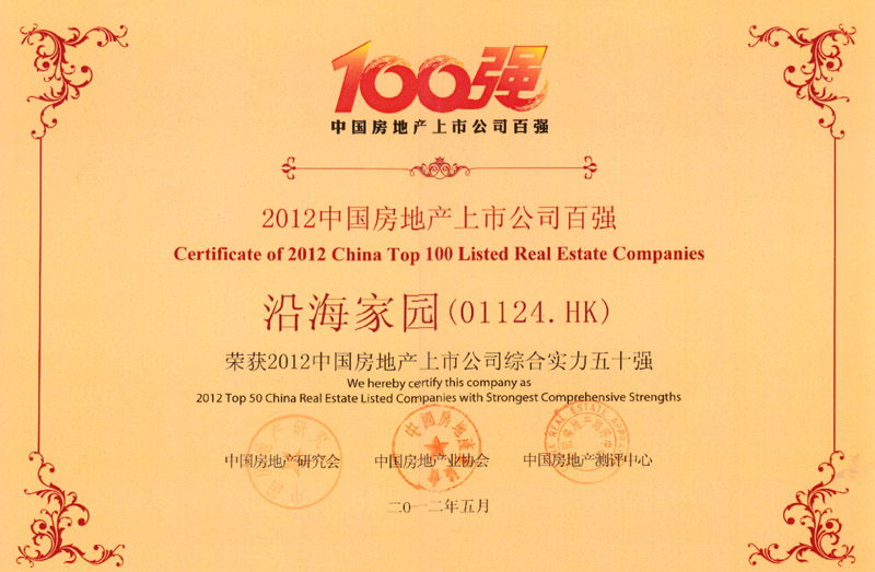 2012年5月22日,由中國(guó)房地產(chǎn)研究會(huì)、中國(guó)房地產(chǎn)業(yè)協(xié)會(huì)、中國(guó)房地產(chǎn)測(cè)評(píng)中心聯(lián)合主辦的2012中國(guó)房地產(chǎn)上市公司測(cè)評(píng)成果和中國(guó)房地產(chǎn)上市公司排行榜發(fā)布會(huì)在上海召開(kāi)。