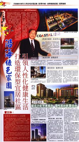 香港上市企業(yè)沿海綠色家園集團(tuán)在北京所開發(fā)的沿海賽洛城榮獲“影響中國——經(jīng)典地標(biāo)建筑”。評審團(tuán)對此項(xiàng)目給出了很高的評價(jià):“區(qū)內(nèi)最具代表性的設(shè)計(jì)元素為中部的一個(gè)380米乘50米的綠化帶,如同一個(gè)巨大的綠色肺臟,為社區(qū)提供源源不斷的新鮮氧氣和清新氛圍。2005年,沿海賽洛城通過美國綠色建筑委員會的各項(xiàng)考核,成為中國第一個(gè)通過LEED-ND評審的住宅項(xiàng)目。”沿海綠色家園董事局主席曾文仲先生出席了頒獎(jiǎng)典禮并領(lǐng)取了此項(xiàng)大獎(jiǎng)。