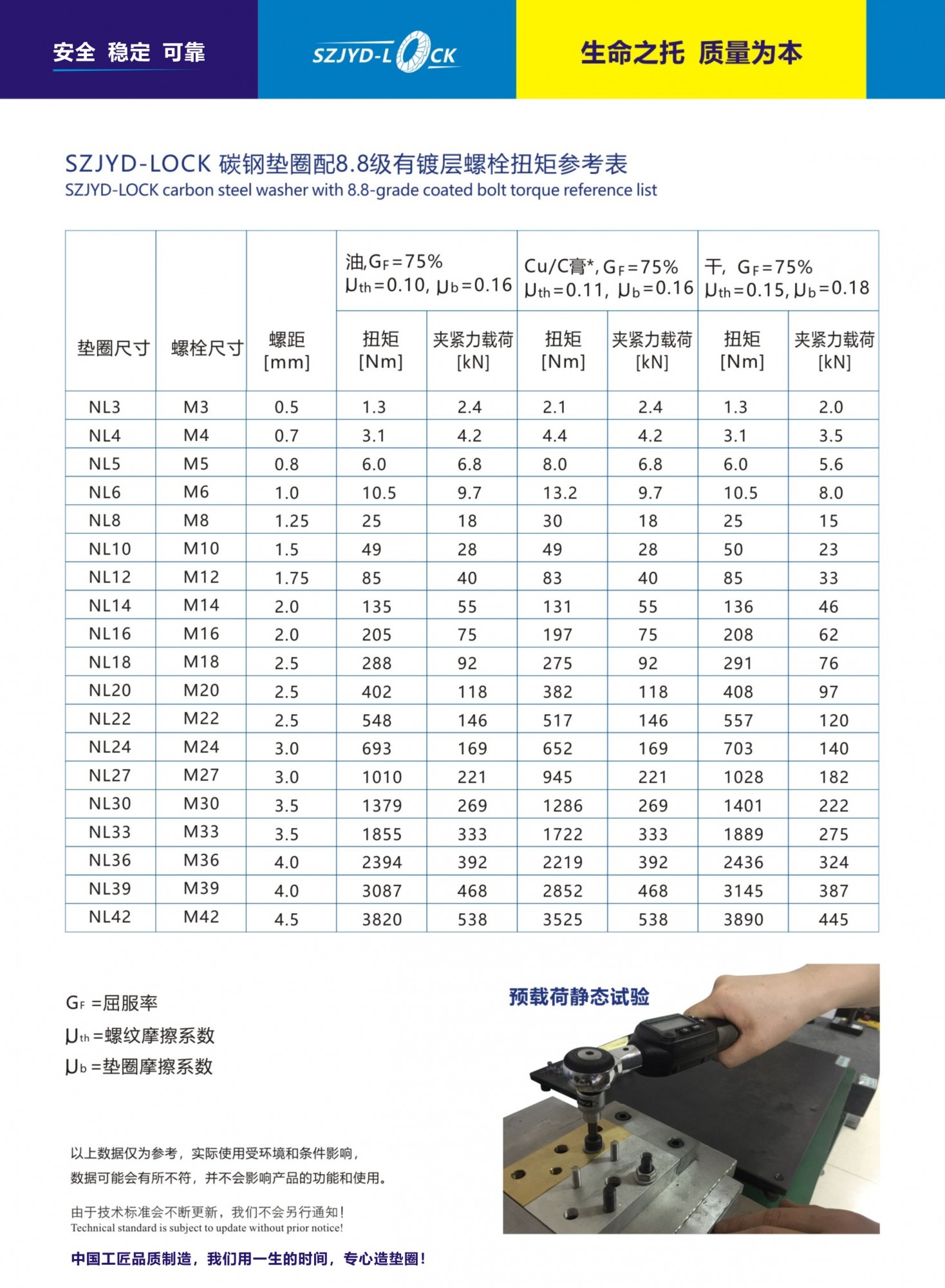 確保在強(qiáng)震動(dòng)下仍然保持連接件的夾緊力,優(yōu)于依靠摩擦力來(lái)制瑣的緊固件;防止因震動(dòng)引起的螺栓松動(dòng),不再發(fā)生由于緊固件松動(dòng)而引起的相關(guān)問(wèn)題;不需要特殊的安裝工作,容易安裝和拆卸;這個(gè)系統(tǒng)可以用高或低的預(yù)負(fù)載力鎖緊固定元件;不受原始擰緊力影響!鎖緊功能不受潤(rùn)滑影響溫度有變化也不會(huì)使連接件松動(dòng);具有耐久性;可重復(fù)使用。
