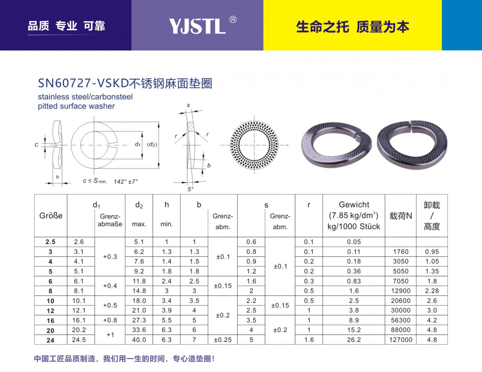 SN60727-VSKD墊圈由西門子軌道交通公司設計、基于張力摩擦的構造原理。鞍形彈性墊圈麻面花紋與螺栓鎖緊面接觸,可增加摩擦力與鎖緊效果!