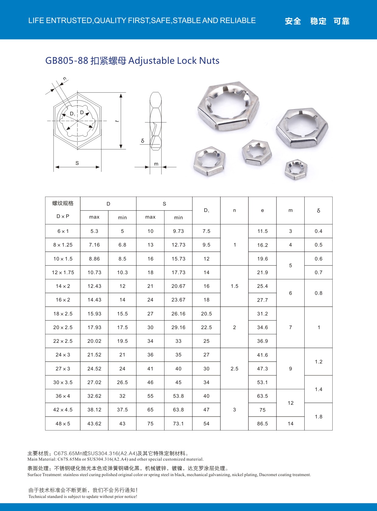 國標GB805扣緊螺母,使用65MN彈簧鋼材質,全硬化鍍鋅除氫處理,常規品M4-M48現貨齊全!歡迎索樣咨詢!