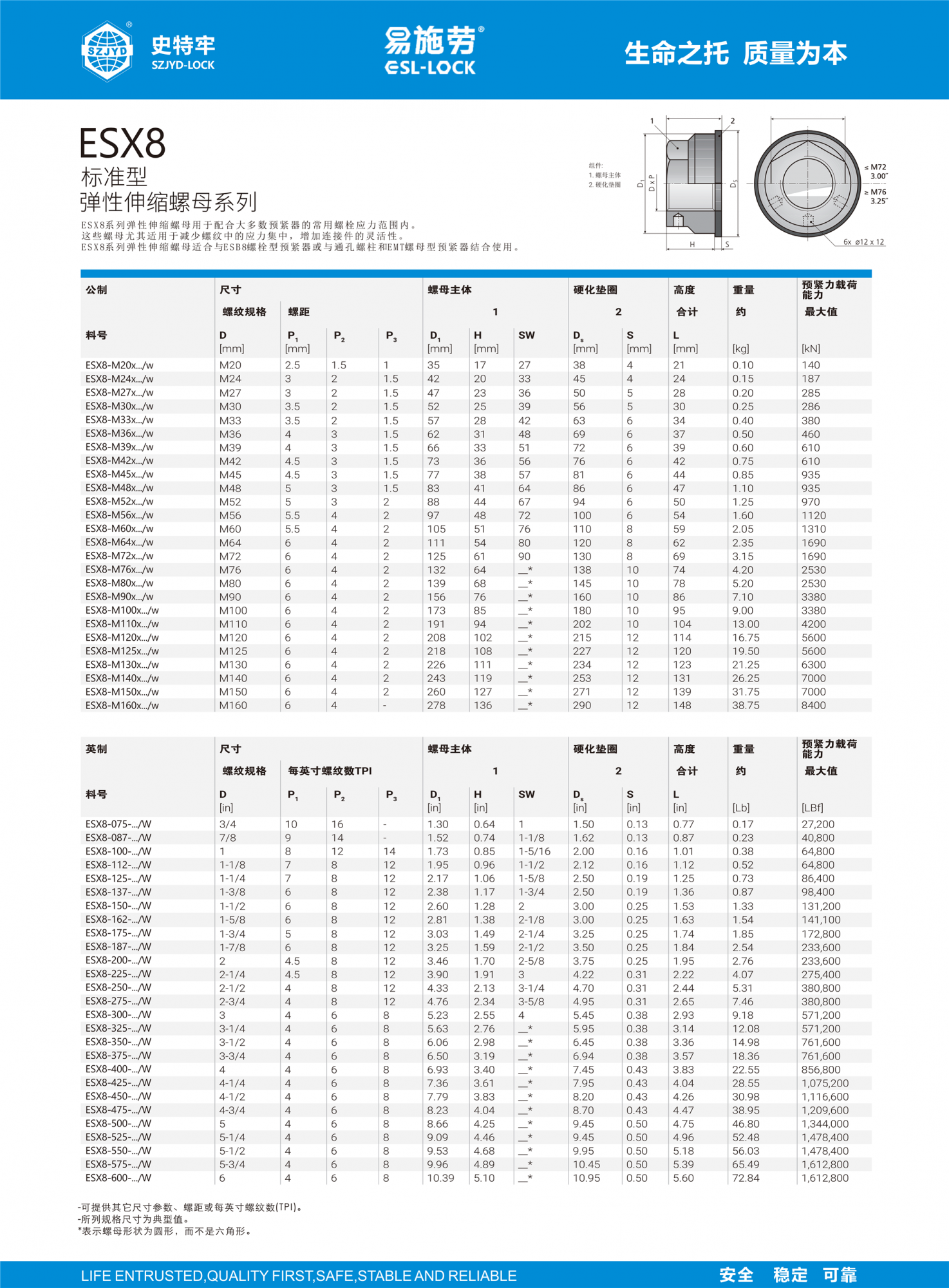 多頂推超級預(yù)緊器,可在很小空間安裝,使用簡單工具即可輕松預(yù)緊,節(jié)省安裝時間,ESL-LOCK品牌易施勞超級螺母具有完全的防松鎖緊功能,可多次拆卸重復(fù)使用。特別適用于M24規(guī)格以上大型螺栓鎖緊!一擰永固,永不松動!使用常規(guī)格為合金材料及特殊不銹鋼合金材料以及鎳基合金材料!更多了解歡迎咨詢我們.....
