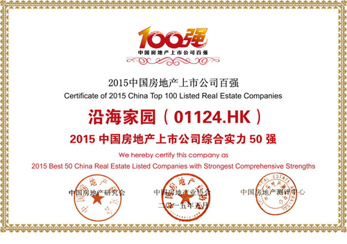 沿海綠色家園榮膺“2015中國房地產上市公司50強”