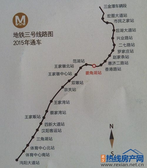 地鐵軌道方面,三號線可連接漢口三金潭和沌口開發區,中途下穿漢江,線路經菱角湖公園進入建設大道,串起江岸、江漢、硚口、漢陽4個中心城區,全長28公里,總投資約173億元,將于2015年通車。