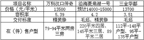與菱角湖壹號一樣同屬菱角湖商圈的萬科漢口傳奇,已于6月15號第一次加推,小編詢問置業顧問時,置業顧問表示預計也是明年年底交房,主要戶型為79-94平米兩房三房,全部為精裝修。